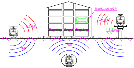 城市轨道交通按产生噪声的声源可分为轮轨噪声、车辆非动力噪声、牵引动力系统噪声、高架轨道噪声、地下铁道的地面承载噪声及客运站人群噪声等。解决城市轨道交通噪声问题是一个综合的系统工程。 地铁通风空调系统声源设备主要由隧道送/排风机(TVF)、排热风机(TEF)、隧道射流风机、回/排风机、新风机、组合空调机、送/排风风机、室外冷却塔、列车噪声等。